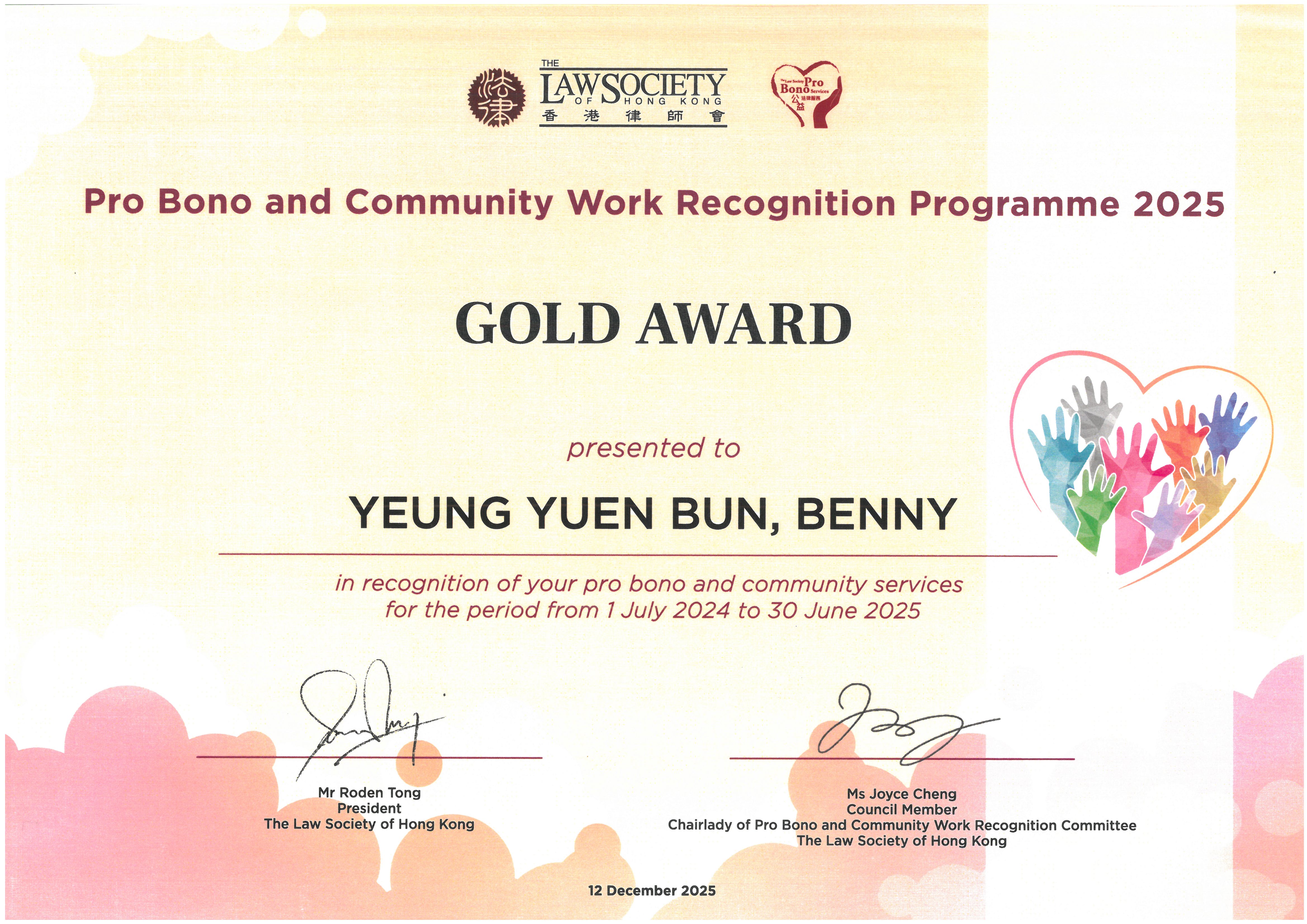 - Mr. Benny Yeung, Senior Partner –Individual Gold Award